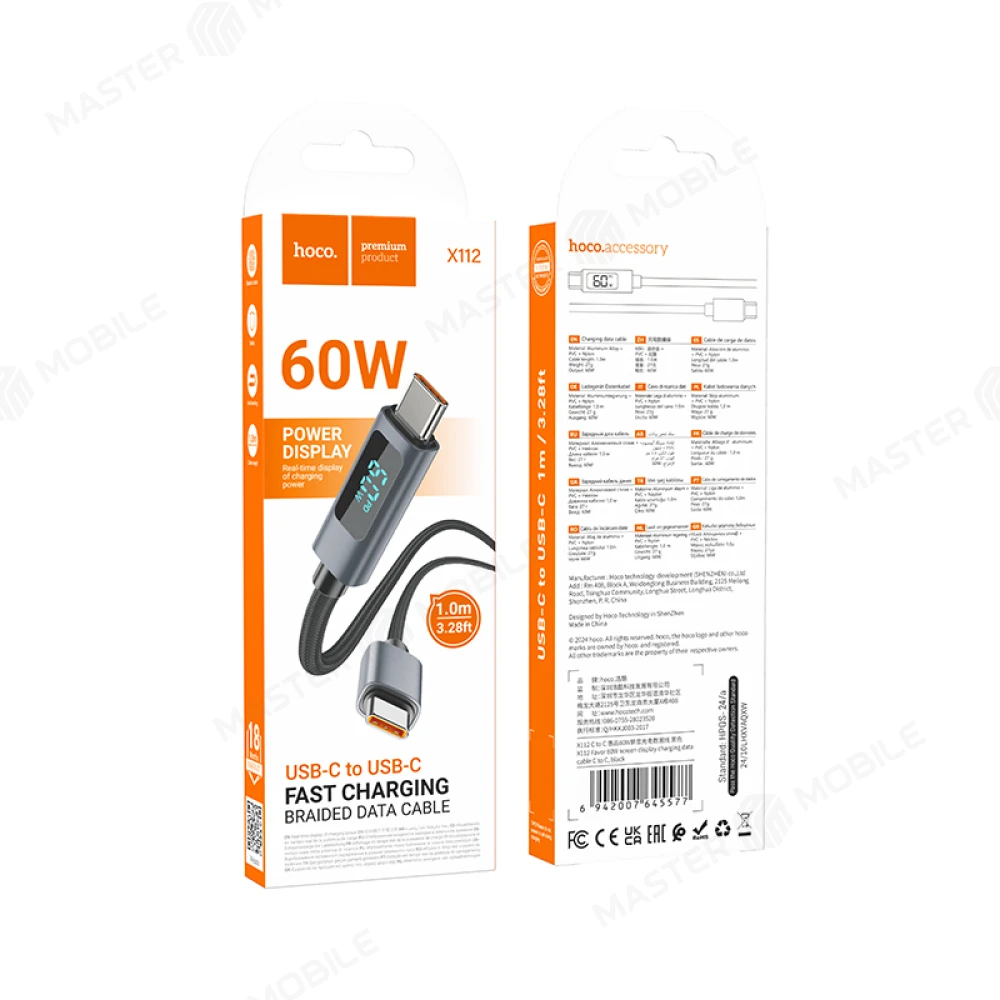 Описание Дата-кабель Hoco X112 TypeC - TypeC 1 м 60W (черный)