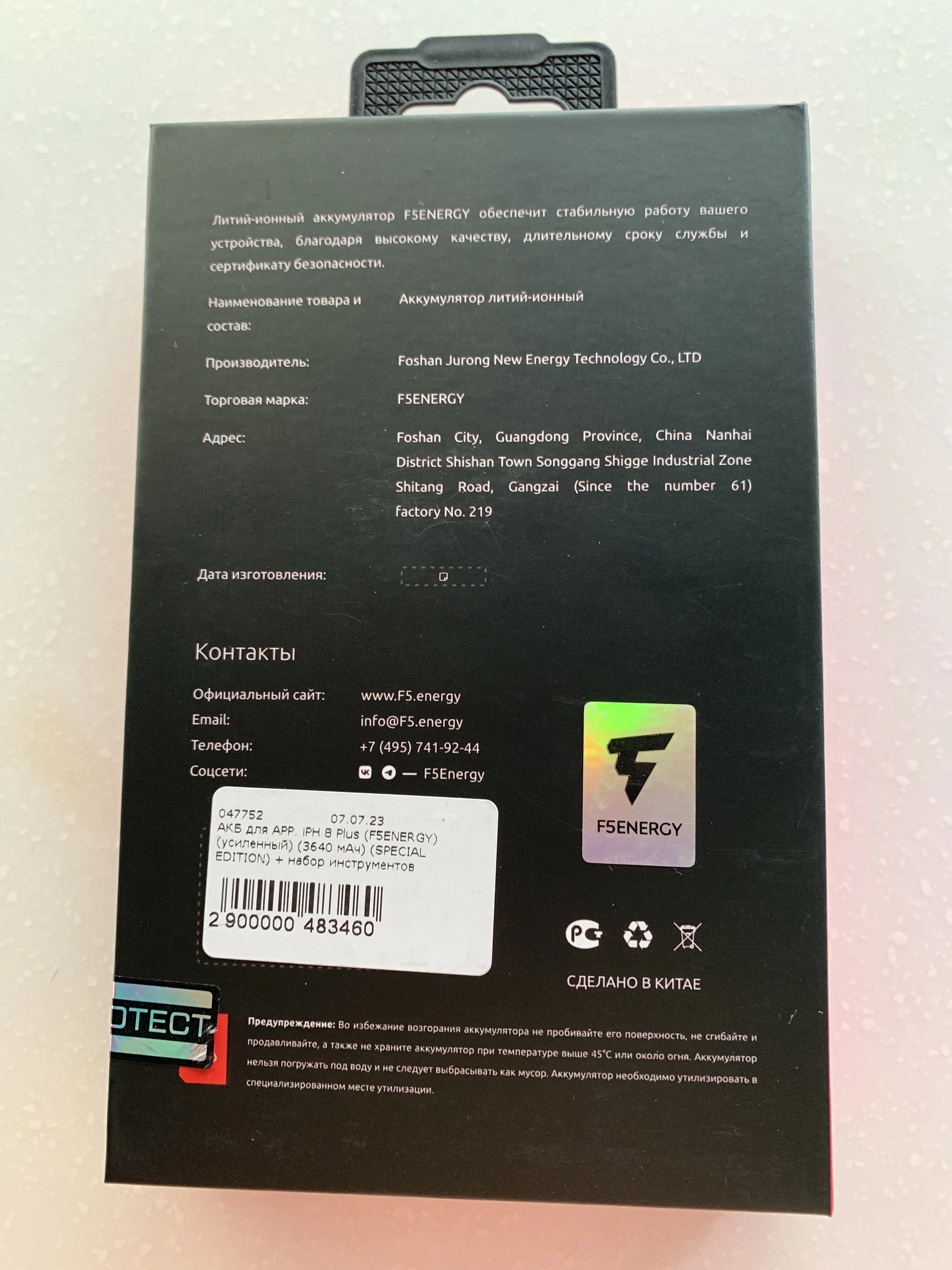Отзывы о Аккумулятор для Apple iPhone 8 Plus (F5ENERGY) (усиленный) (3640 мАч) (SPECIAL EDITION) + двухсторонний скотч