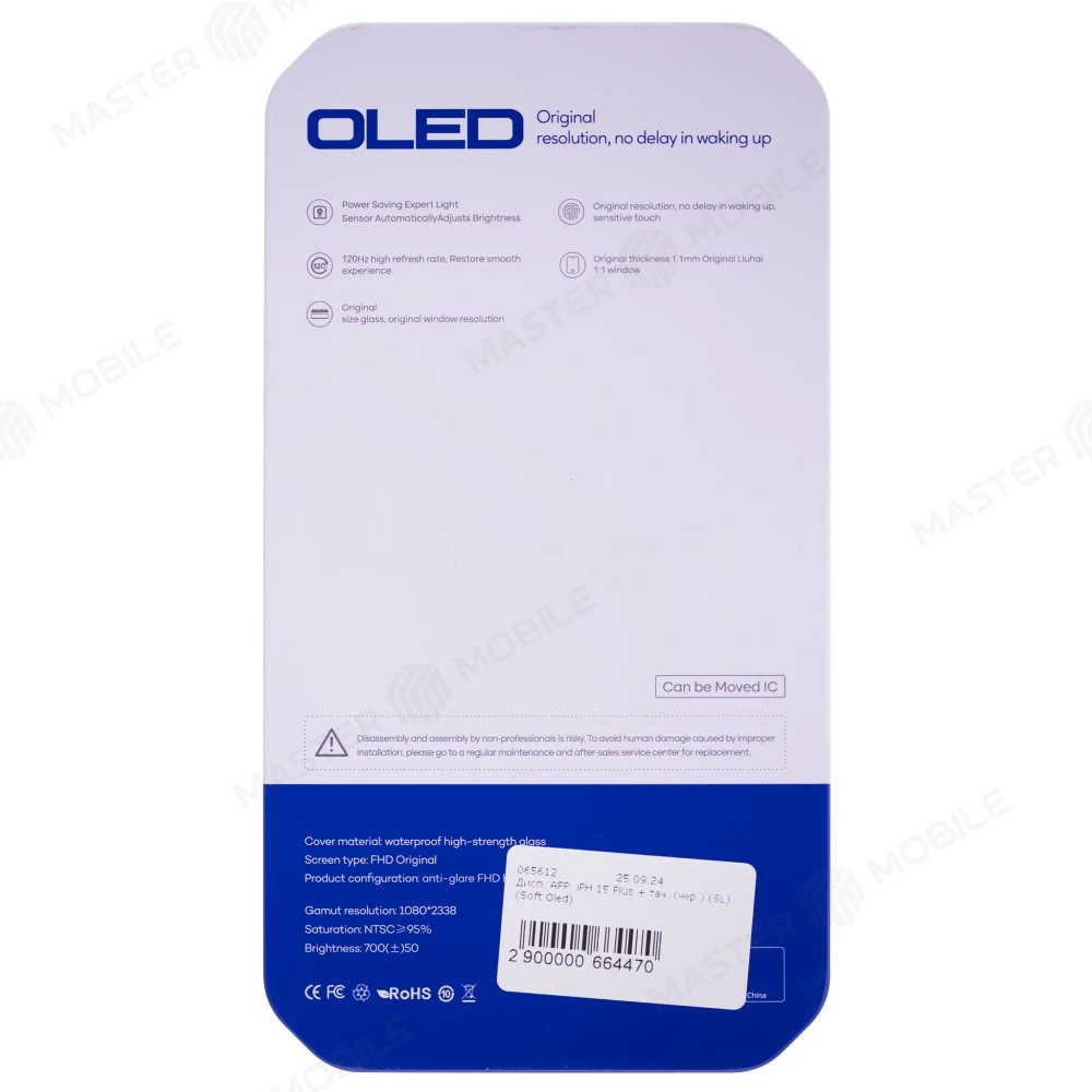 Характеристики Дисплей для Apple iPhone 15 Plus + тачскрин (черный) (SL) (Soft Oled) (площадка под IC)