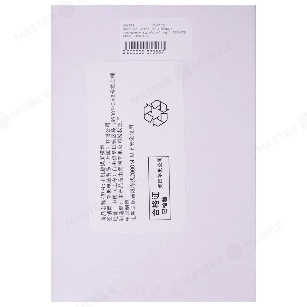 Дисплей для Apple iPhone 16 Pro + тачскрин + ALS шлейф (черный) (ORIG100) (SP)
