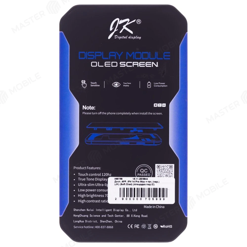 Характеристики Дисплей для Apple iPhone 14 Pro Max + тачскрин (черный) (JK) (Soft Oled) (площадка под IC)