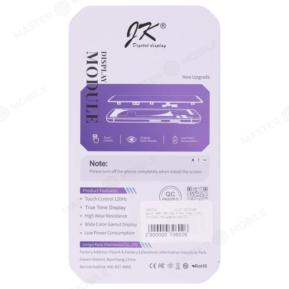 Дисплей для Apple iPhone 16E + тачскрин (черный) (JK) (In-Cell) (площадка под IC)