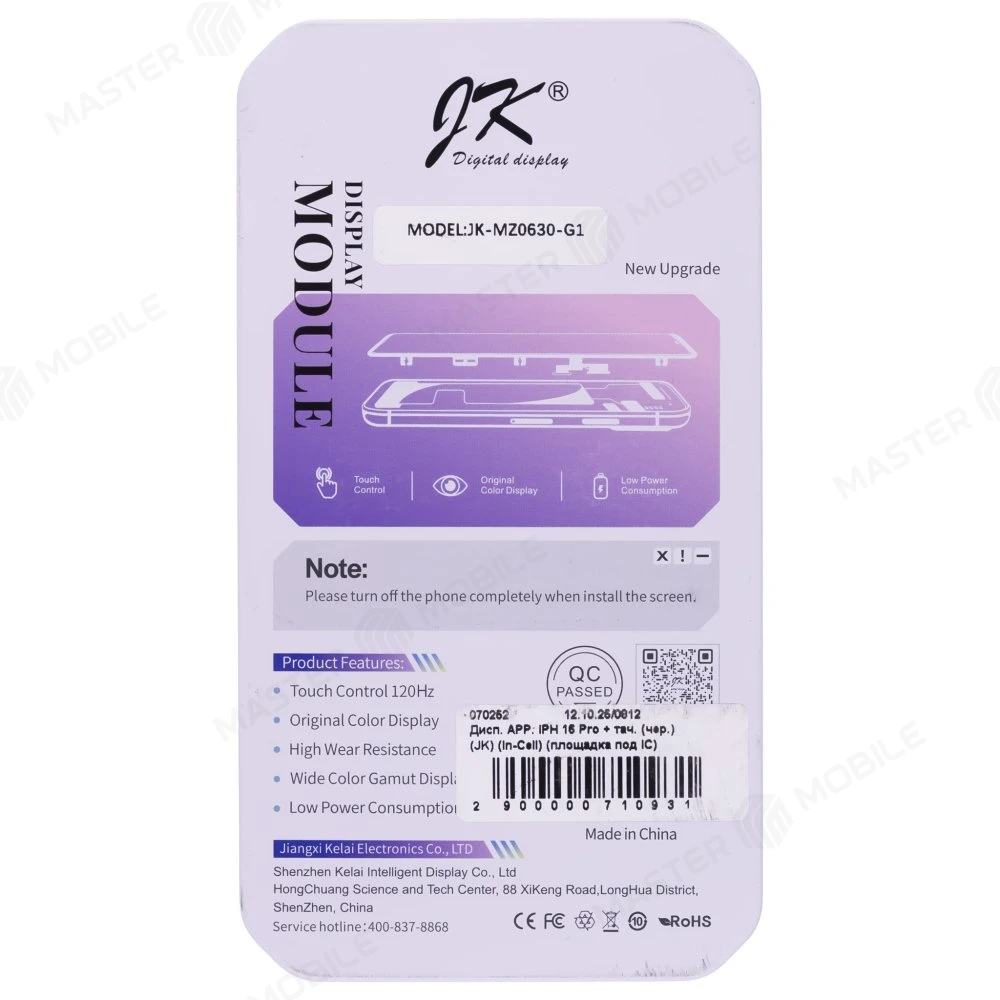 Характеристики Дисплей для Apple iPhone 16 Pro + тачскрин (черный) (JK) (In-Cell) (площадка под IC)