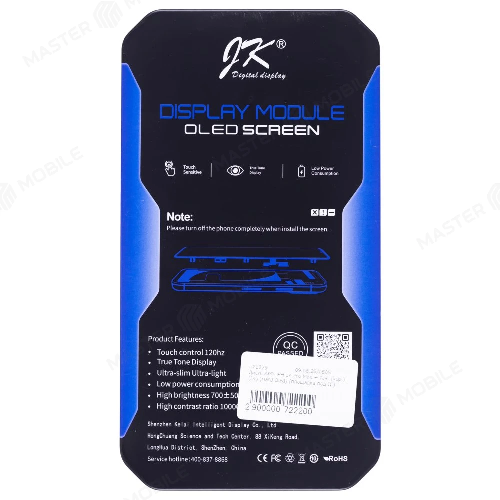 Описание Дисплей для Apple iPhone 14 Pro Max + тачскрин (черный) (JK) (Hard Oled) (площадка под IC)