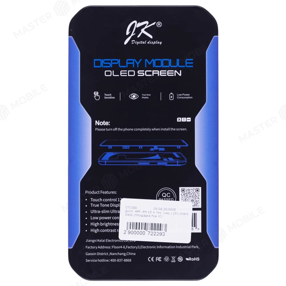Дисплей для Apple iPhone 15 + тачскрин (черный) (JK) (Hard Oled) (площадка под IC)